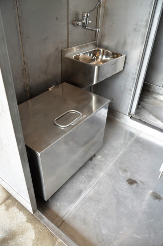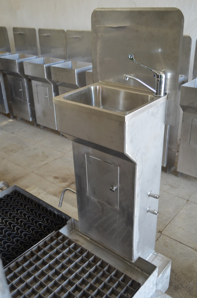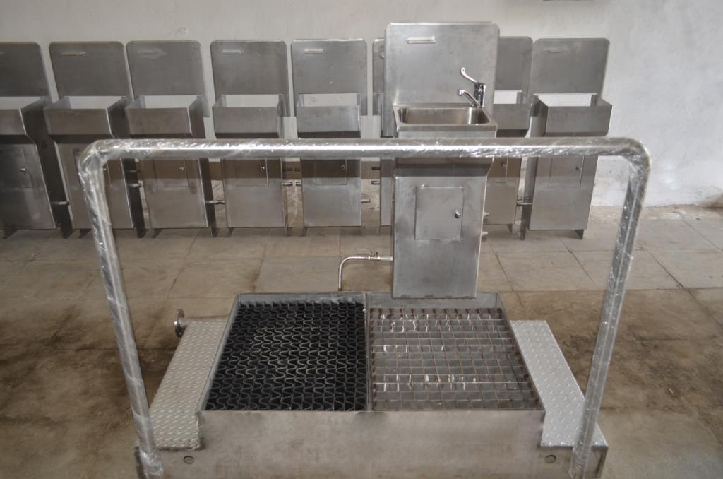 Блок санитарного шлюза предназначен для обмыва и очистки обуви и мытья рук.