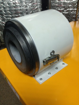 Защита детектора выполнена из свинца в стальной обечайке и состоит из основной части и трех сменных коллимированных насадок. Насадки стыкуются с основной защитой с помощью замкового соединения и двух защелок.